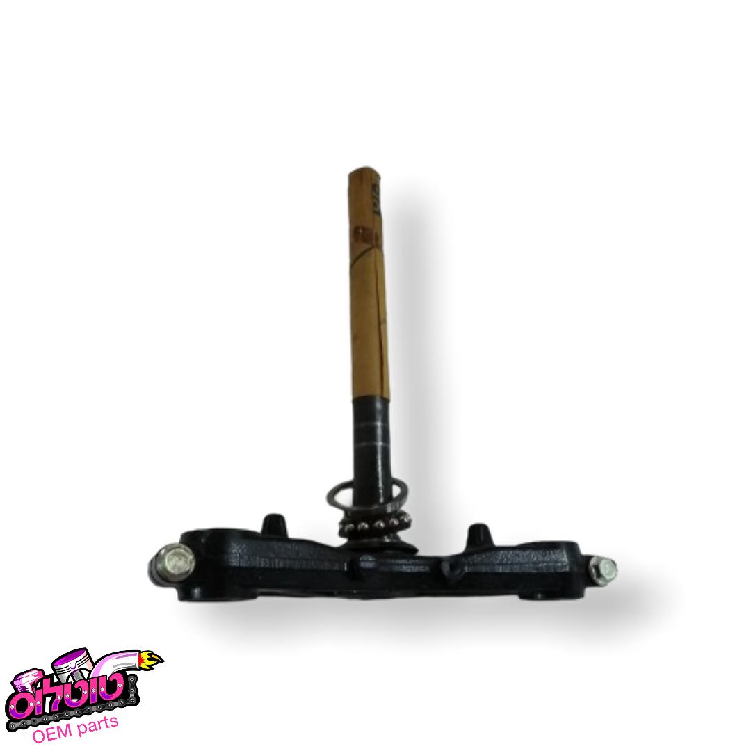 משולש היגוי תחתון ל-YAMAHA XMAX 300, מתאים לדגמים משנת 2017 ואילך. זהו רכיב מרכזי במערכת ההיגוי של הקטנוע, המחבר בין המזלג הקדמי לשלדה ומבטיח יציבות, דיוק ובטיחות במהלך הנסיעה. החלק עשוי מחומרי מתכת חזקים המספקים עמידות גבוהה בפני עומסים ולחצים.